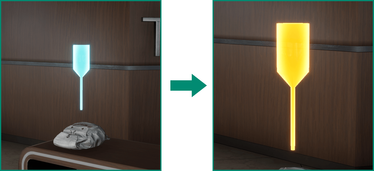 取得できる距離まで近づくと、色が青からオレンジに変化します。
